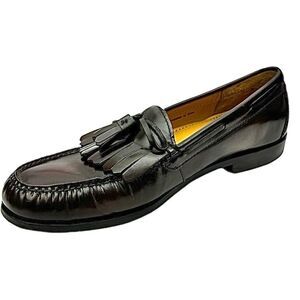 Step into timeless style with these classic Cole Haan men’s tassel loafers. Crafted from rich burgundy leather, these shoes feature elegant tassel detailing, a traditional moc toe design, and a comfortable fit in size 11 D (medium width).