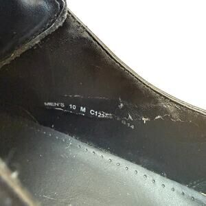 The COLE HAAN Men's Wingtip Oxfords Shoes in Black, size 10M, feature a classic round toe shape with lace-up closure and wingtip detailing. Made of leather with a leather and rubberized outsole, these shoes provide comfort and support with arch support and slip resistance. Ideal for casual dress or business attire, these Oxfords are designed for men looking for a stylish and versatile shoe option. Perfect for everyday wear, these shoes offer a blend of sophistication and practicality. In Very Good to Excellent Condition, please see pictures. Some very minor interior cracking.