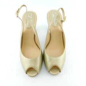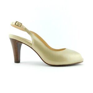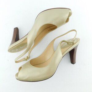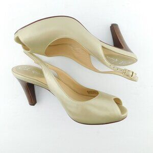 COLE HAAN Nike Air Shimmer Gold Metallic Leather Peep Toe Slingback Heel Pumps 7