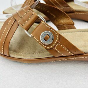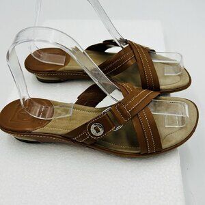 COLE HAAN NikeAir Brown Leather Wedge Criss Cross Slip-On Sandals Size 7.5B