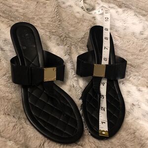 : : selling very cute preowned preloved COLE HAAN OS GRAND Thong Sandals with Gold Tone Block Square Logo Detail in good barely worn condition : :