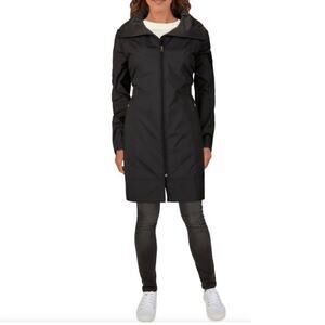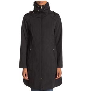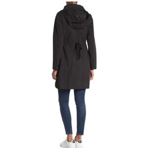 COLE HAAN Packable Raincoat Women XS Black Hooded Drawstring Feminine Whimsygoth Boho Travel