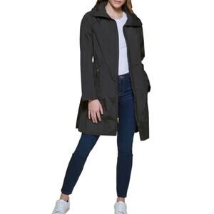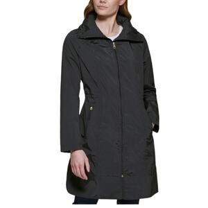 COLE HAAN Packable Raincoat Women XS Black Hooded Drawstring Feminine Whimsygoth