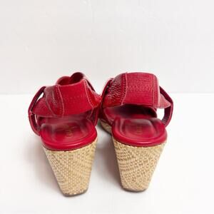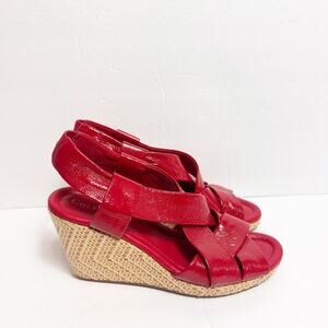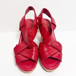 COLE HAAN RED PATENT LEATHER ESPADRILLE PLATFORM WEDGE WOMEN SIZE 6.5