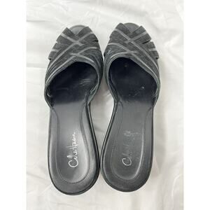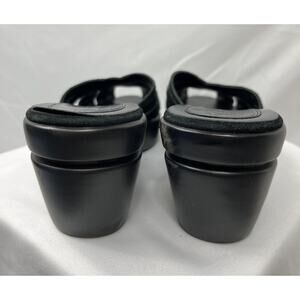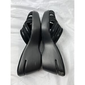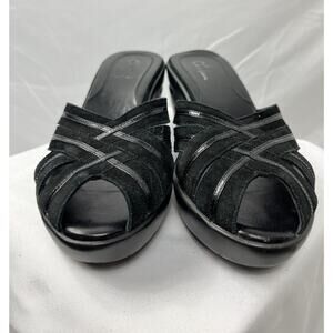 COLE HAAN Rich Black Suede Patent Leather SLIDE SANDALS SHOES 7 B Wedge Heels