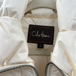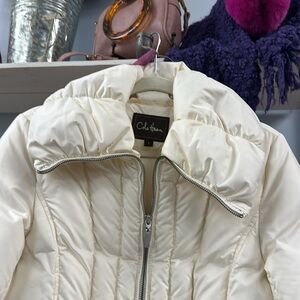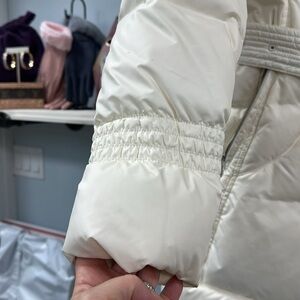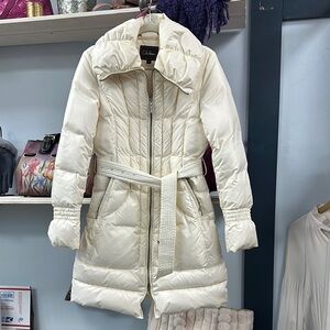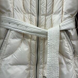 COLE HAAN White Puffer Coat with Wide Collar and Belt Size SMALL