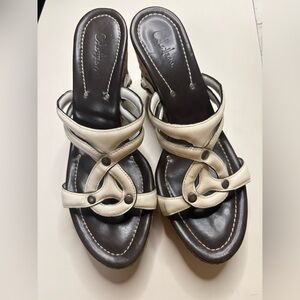 COLE HAAN White Wedge Cork Platform Sandals Womens Size 9 Slip On Shoes