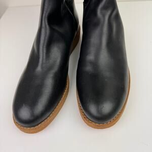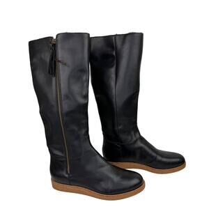 Cole Haan Womens Black Waterproof Leather Side Zip Knee High Boots