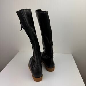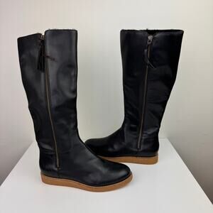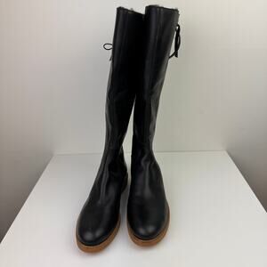 COLE HAAN Women Black Waterproof Leather Side Zip Shearling Knee High Boot 7 NEW