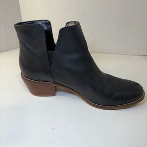 COLE HAAN Women's 7B Black Leather Abbot Pull On Block Heel Ankle Boots