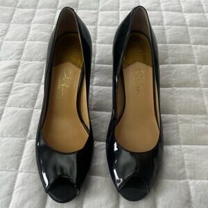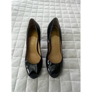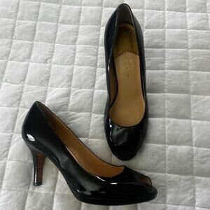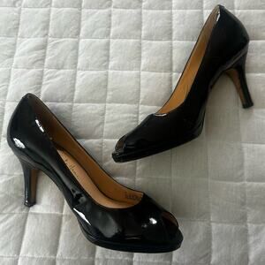 COLE HAAN Womens Pumps Black Pantent Leather Open Toe Heel 3" | 8.5