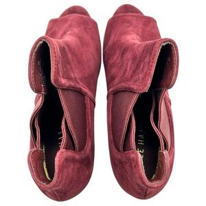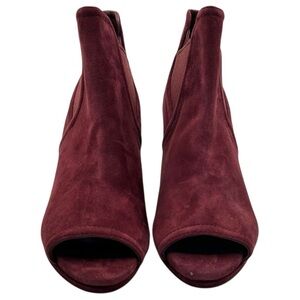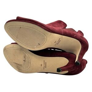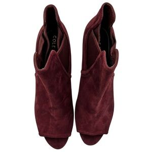 COLE HAAN Women's Red Jones Peep Toe Bootie In Cordovan Suede Size 8