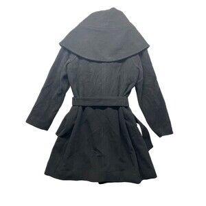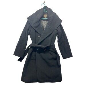 COLE HAAN Wool Blend Pea Coat Black Belted Size 8 Women’s Shawl Collar Cashmere