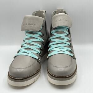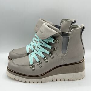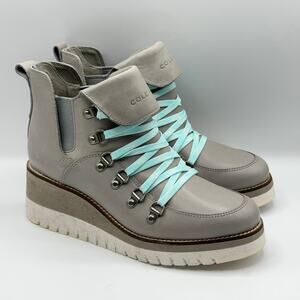 COLE HAAN ZeroGrand Waterproof Wedge Hiker Ankle Boot Leather Gray Sz 7 $230