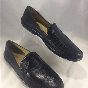 Men's Cole Haan collection black Sheep Skin leather slip on moccasins with Nike air soles! Size 13 M * see pics for detailed wear and condition