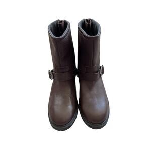 COLE HAAN grand O mid calf moto boot fleece lined back zip 6B