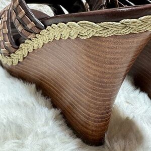 COLE HAAN stitch wedge brown heal leather espadrille slides shoes 7.5B