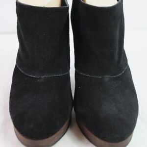 COLE HAAN BLACK SUEDE PLATFORM ANKLE BOOT BOTTIES STACKED HEELS SZ 7.5B.