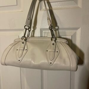 COLE HAAN TRINITY Baguette style Leather White Satchel silver tone hardwares.top zipper the inside lining has a side zipper. Pre owned in good used condition see all pictures any questions please message.Z3