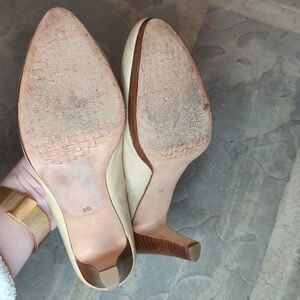 COLE Haan Leather Pumps Woman's size 8 snake texture 3.5" heel Cream Neutral