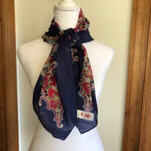 COLE OF CALIFORNIA Marc Vigneron Blue Floral Print Nylon Scarf Square Vi…