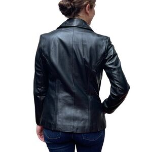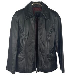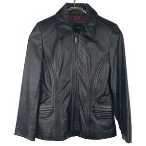 COLEBROOK & COMPANY 90S BLACK LEATHER XS PETITE ZIP UP JACKET