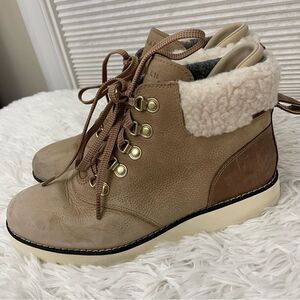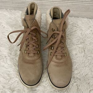 COLE HAAN Nantucket Rugged Waterproof Suede & Faux Fur Hikers Ankle Boots sz 7B