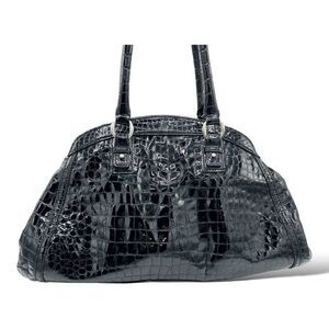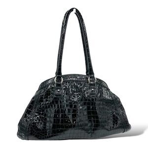 COLE HAAN XL Black Reptile Embossed Patent Leather Tote Bag