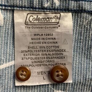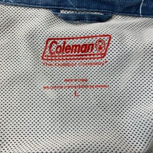 COLEMAN Men's Blue Fly Fishing Outdoor Camping Hiking Short Sleeve Shirt sz L.