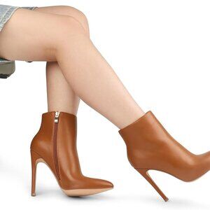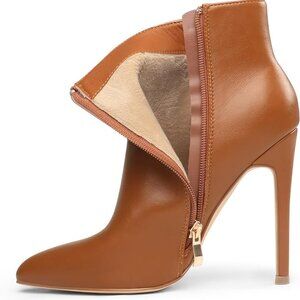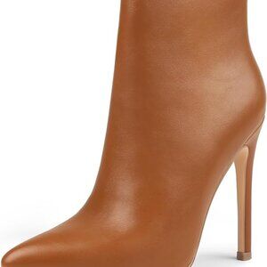 COLETER Women's Brown Ankle Boots Closed Pointed Toe Stilettos Autumn Dress Boot