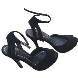 Velvet feel with adjustable ankle strap and open toe. 5" heel