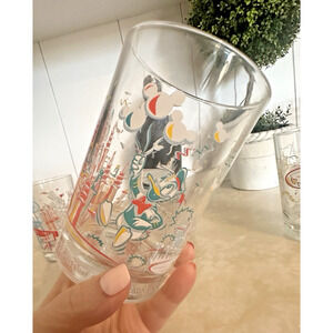 The product is a set of four collectible glasses commemorating the 25th anniversary of Walt Disney World at McDonald's in 1996. The glasses feature a Disney theme, tying in with the overall branding and franchise of Disney. These limited edition glasses were likely manufactured in the United States and are part of a series of collectibles known as Disneyana. Perfect for Disney enthusiasts and collectors, this set of glasses holds sentimental value for those who appreciate the nostalgia of Disney and McDonald's collaborations.