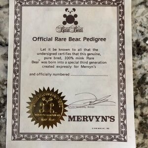 1982 real mink “Rare Bear” new in original box with original papers and numbered tag.