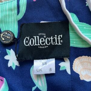 COLLECTIF Jade Summer Flamingo Swing Dress in Navy NWT Size XS