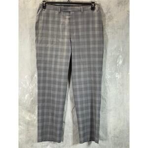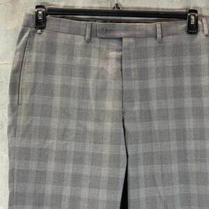 COLLECTION By MICHAEL STRAHAN Men's Grey Plaid Classic-Fit Flat Front Pants SZ 36X32