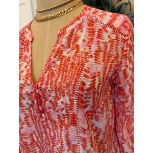 COLLECTIVE CONCEPTS Red Pink Pattern Blouse Top Shirt Women's size S Tomato Girl