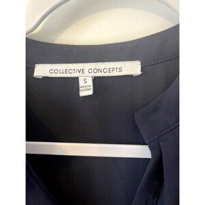 COLLECTIVE CONCEPTS Womens Navy Blue VNeck Button up S Sleeveless Blouse Chiffon