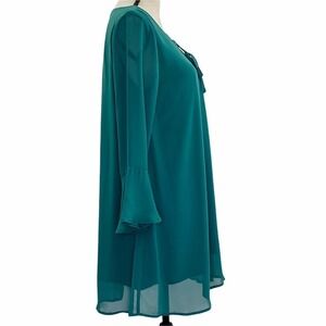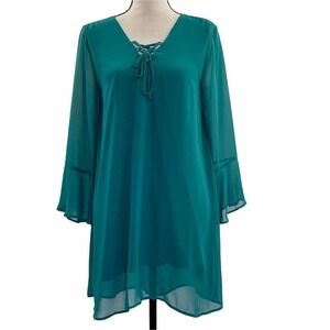 Collective Concepts Teal Bell Sleeve Lace-Up Dress Women's Size Small