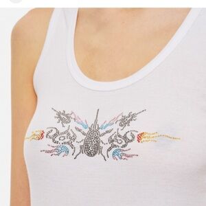COLLINA STRADA White Rhinestone Ribbed Tank Top in M