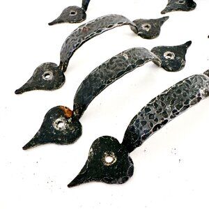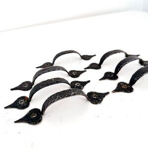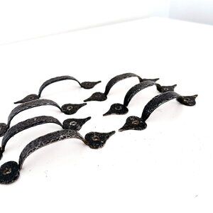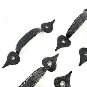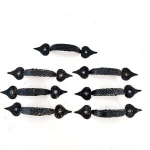 COLONIAL BLACK HAMMERED WROUGHT IRON DRAWER PULL HANDLE - SET OF 7