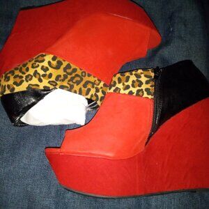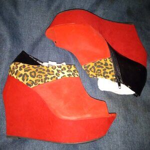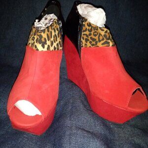 " COLOR BLOCK ME "Red/ Leopard /Black Wedges Open Toe