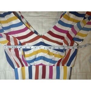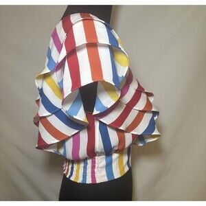 Multi-colored stripes, colorful, bright, ruffles short sleeve, artsy, fun