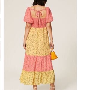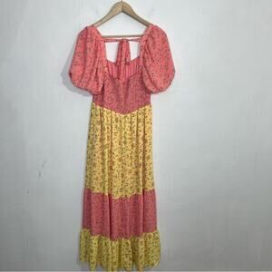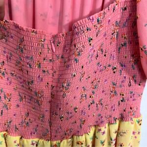 COLOR ME COURTNEY Yellow Pink Ditsy Flower Printed Cece Maxi Dress Size 10