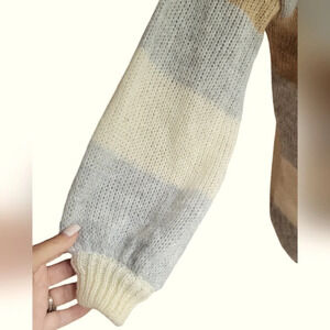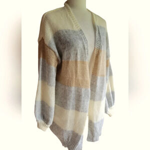 Soft fuzzy loose knit open front cardigan with cute puff sleeves. Great neutral palette!
