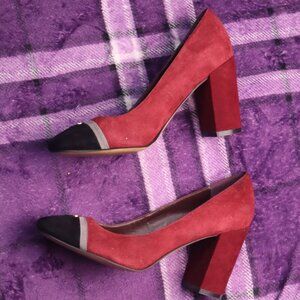 COLORBLOCK HEELS 7.5 Tommy Hilfiger Chunky Red Black Fall Classic Leather Retro