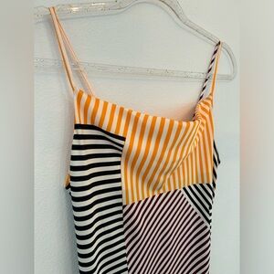 Slip dress with slight cowl neckline. Mid-length with nice curve flattering shape.