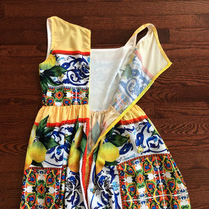 Colorful casual summer dress. NEW without TAG. Size M. Fabric material = 100 % polyester. Some measurements according to SIZELY.COM are as follows. FRONTH LENGTH = 45, CHEST = 15 1/2, WAIST = 13. Back zip length = 18.