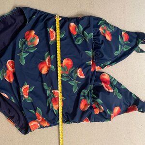 Sexy, cute and brand new! Low cut v-neck, and low back. Citrus oranges on dark blue background, very colorful. Adjustable straps with bow on shoulder area. Cup insert for coverage. Very soft material. Old Navy brand. I will include an orange sarong that I bought separately that matches the oranges in the swim suit. (See last pic). Measurements listed for a good fit.