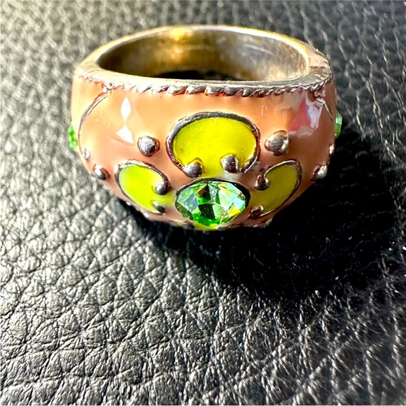 COLORFUL CLOISONNÉ RING silver plated. Size 7 - color looks as though it’s a dark