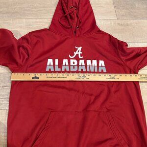 The product is a men's large Alabama Crimson Tide hoodie shirt by Colosseum, featuring the iconic "Roll Tide" design. It is officially licensed for college football fans and made in a vibrant red color. This sweatshirt is perfect for those looking to show their support for the Alabama Crimson Tide in style.